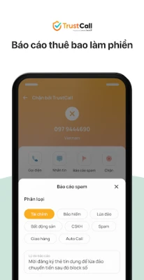 Trust Call: ứng dụng cho điện thoại thông minh hỗ trợ người dùng nhận diện và chặn các cuộc gọi rác, lừa đảo, spam, quảng cáo hiệu quả, an toàn.