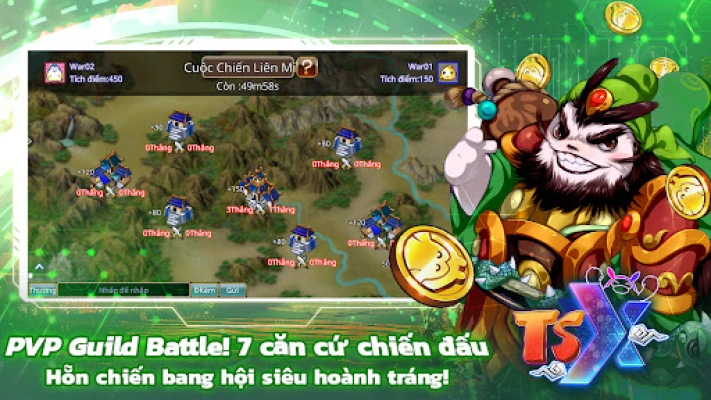 Hợp tác, lên chiến thuật và tham gia Guild War 5v5 kịch tính. Chiến đấu trên chiến trường đặc biệt với 7 cứ điểm, tranh giành vị trí trên Bảng Xếp Hạng Guild. Chỉ những guild mạnh nhất mới giành được phần thưởng danh giá mỗi tuần!