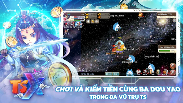 Từ vũ trụ TS Online Mobile, TSX tiến hóa thành Multiverse đột phá, kết hợp Web3, GameFi, P2E, NFT, Mining và hệ thống Token Marketplace đầy đủ tính năng.