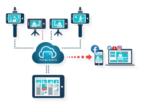 TUBICON’s intuitive user interface provides users an easy access for live production anytime and anywhere. You can quickly and easily switch live between multiple cameras/smartphones, mix audio, fade in graphics, logos and lower thirds and simultaneously record and stream live in all social media channels.
