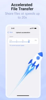 * Accelerated File Transfer: Share documents, media, and other files at speeds up to 20x or compressed quality.