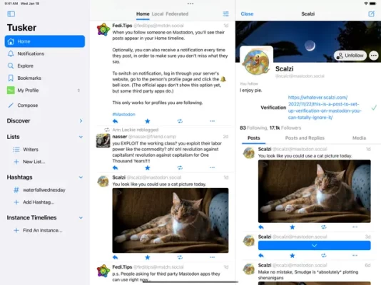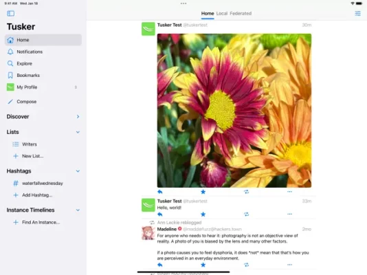 • Broad software compatibility: Tusker also has builtin support for the Glitch and Hometown variants of Mastodon; as well as Pleroma/Akkoma, a Mastodon alternative; and PixelFed, a photo-sharing social network.
