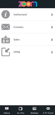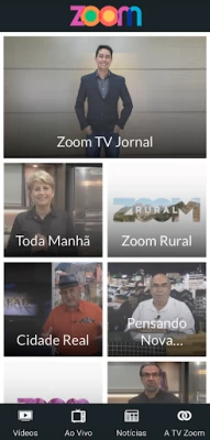 - Ao vivo: a nossa programação no ar, em tempo real, 24 horas por dia no seu celular. - Vídeos: matérias do ZoomTV Jornal e programas na íntegra. - Envie: a sua participação em foto, vídeo ou texto diretamente para a produção.