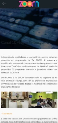 Com 24 horas diárias de transmissão de conteúdo 100% Nova Friburgo, o aplicativo da TV Zoom é completo.