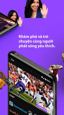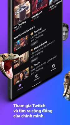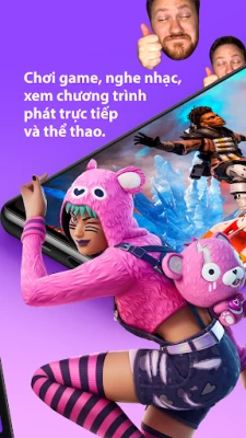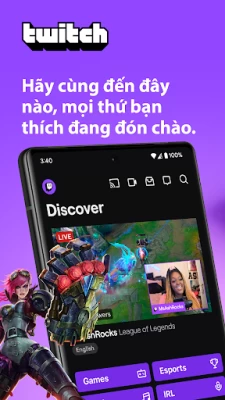 Twitch là nơi hàng nghìn cộng đồng tụ hội để gặp gỡ các streamer nổi danh, để cùng bàn luận về những trò chơi được yêu thích, để có những khoảnh khắc vui vẻ, để đến với nhau, để làm bất cứ điều gì. Hãy tải Twitch và hòa mình cùng hàng triệu người trong các buổi phát sóng trực tiếp về game, về âm nhạc, về thể thao, về esport, về podcast, chương trình nấu ăn, vlog ngoài đời thực và mọi nội dung mà các thành viên trong cộng đồng có thể nghĩ ra. Mong được gặp các bạn trong các buổi trò chuyện nhé.