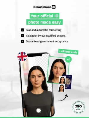Since 2017, millions of users have trusted Smartphone iD to take official ID photos from home.Whether it's for a passport, visa, driving licence or residence permit, you’ll get a compliant photo in just minutes — with full guidance.