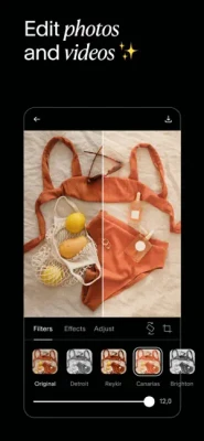 Advanced AI Editing Tools: Edit your photos and videos with our filters and effects. Choose from filters like Tulum and Canarias or effects like VHS and Glitch. Adjust your brightness, contrast, shadows, highlights, saturation, warmth and tint. You can even remove any background from your photos with our AI Background Removal Tool.