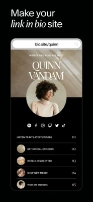 Bio Sites: Make your Bio Site, a beautiful hub for all your links to share in your social bios. You have more than one link, your bio should too.