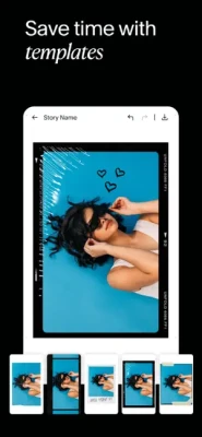 Story, Post, and Animated Templates: Create beautiful content for social with over 400+ templates to choose from. Add filters and effects to your photos directly within the template. Write your text with unique fonts and use advanced text tools. Select a background color or choose a texture. Then share your story with the world!
