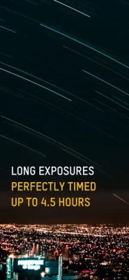 - Long exposures, perfectly timed up to 4.5 hours
