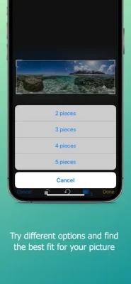 - Take a picture from the app or choose one from your library, - Set the number of pieces you want to split your picture into and adjust the cropping window accordingly.