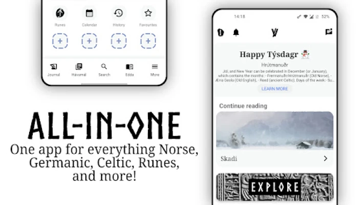 Valhalla+ was an old project which was unfinished and has now returned to reach it's goal, one app for everything Norse, Celtic, Germanic, Medieval dynasty, Viking, Pagan, Runes, and more.