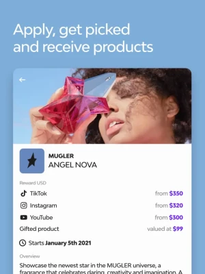 Through our app, we provide you with the opportunity to collaborate with brands like Adobe, Samsung and M.A.C, on Instagram, TikTok and YouTube campaigns.