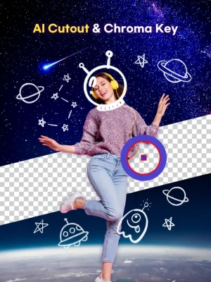 - AI Cutout & Chroma Key: Remove the background in a second with a single click