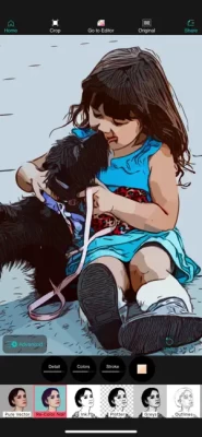 Turn your pixel-format pictures into fully editable vector drawings. With custom filters you can get from a standard vectorization with unlimited colors, crispy grayscale images, two-tone stencils, original Pop-Art drawings and amazing polygonal shapes.