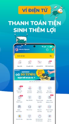 - Thanh toán hóa đơn điện, nước, Internet, truyền hình cáp, hóa đơn tài chính, bảo hiểm, học phí,… mọi lúc mọi nơi với nhiều ưu đãi hấp dẫn
