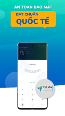 Ví SmartPay đạt tiêu chuẩn bảo mật quốc tế, cảm kết bảo mật hoàn toàn mọi thông tin của khách hàng: PCI DSS cấp độ 1 (cấp độ cao nhất), bảo mật nhiều tầng khi đăng nhập & thanh toán: mã xác thực OTP, xác thực vân tay/khuôn mặt, tự động khóa ứng dụng và tự động ngăn chặn giao dịch có dấu hiệu gian lận.