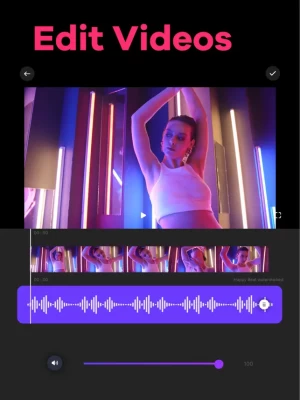 Video Editor app for iPhone and iPad simplifies the entire process of adding music to your videos. Grab videos directly from your camera or gallery and cut out unwanted moments using the video trimmer feature. You can add tracks to any videos by recording the audio yourself or choosing songs from iTunes Music.