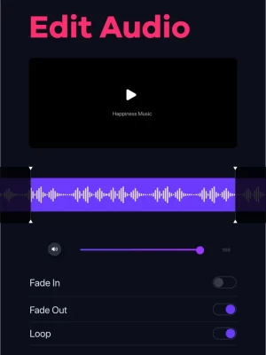 - Adjust volume, loop audio, use fade-in, and fade-out option