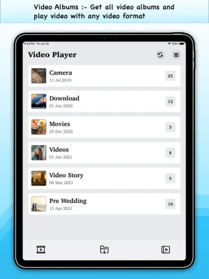 Video Player allows you to create your own video folder and manage videos with own personalize albums.