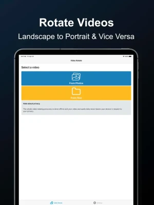 Have you ever recorded a video in the wrong orientation?Video Rotate allows you to fix that easily. Just select your video, pick one rotation option and export the result in a few seconds.
