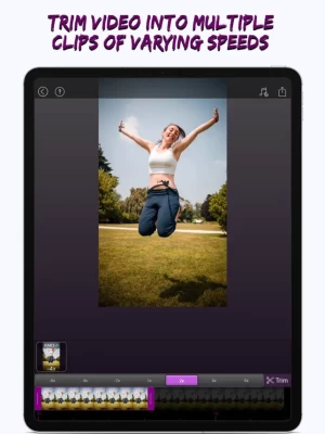 - First divide your video into multiple short clips that need different speeds. - Set the speed for each short clip, review. You can set up to 8x slow or fast motion speeds. - Merge all the short clips back to one. That's it !