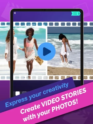 This app shows ads and allows creation of videos containing up to 10 photos. In order to remove ads and /or create videos with up to 20 photos you should check the shop section and make a purchase for real money.
