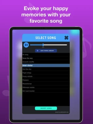 Next, choose up to 20 pictures. Then select a transition effect that suits best the story you want to tell. The video preview will help you decide it easily. Insert your favorite song or check out our music library, there are many different tunes - you may like some. As a final touch, frame your artwork and voila – it only takes a few seconds to create an incredible video story ready to share!