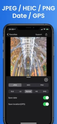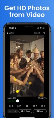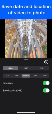 The Pro version also provides the following features - Select image type from JPEG, HEIC, PNG - Change the image quality. - Save the date and time the video was taken to the photo. - Save the location where the video was taken to the photo.