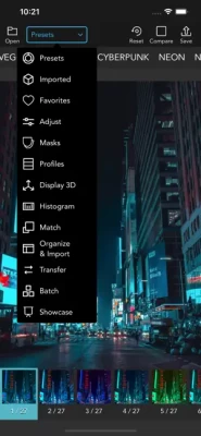 VideoLUT supports a variety of LUT formats, including DaVinci Resolve 3D Cube LUT (.cube) and Autodesk 3D LUT (.3dl). You can import .cube, .3dl, and 512x512 .png LUT tables, and save or import cube files to iCloud, Dropbox, and other storage apps.