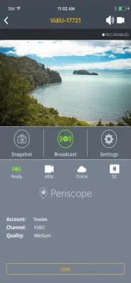The VidiU iOS application allows users to remotely monitor and configure their Teradek VidiU encoder over WiFi.