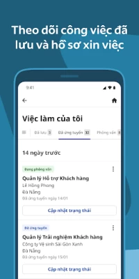 • Theo dõi các đơn xin việc trong quá trình tìm kiếm việc làm và nhận thông báo khi nhà tuyển dụng đã đọc và phản hồi đơn xin việc của bạn trên Indeed