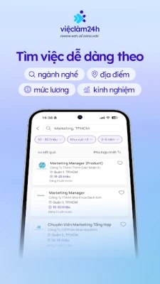 Dù bạn là sinh viên mới ra trường, người đã đi làm nhiều năm, hay đang muốn tìm một hướng đi mới cho sự nghiệp, ứng dụng Vieclam24h đều mang đến giải pháp tìm việc làm phù hợp với nhu cầu và năng lực cá nhân.