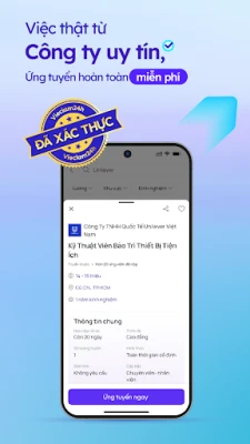 - Ứng tuyển trực tiếp: Gửi CV đến nhà tuyển dụng chỉ với một lần chạm ngay trên app Vieclam24h. Quá trình ứng tuyển đơn giản, minh bạch và tiết kiệm thời gian.