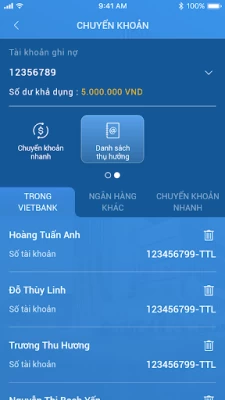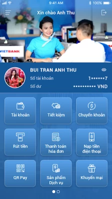 - Account Management: Easy to view and query types of accounts: Payment account, Loan, Savings ... in a simple and convenient way.