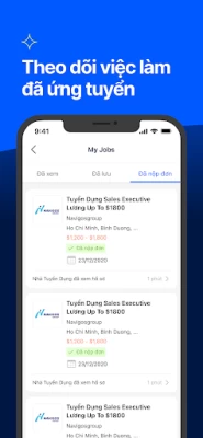 - Nhận thông báo tự động khi có việc làm phù hợp mỗi ngày để trở thành người đầu tiên ứng tuyển.