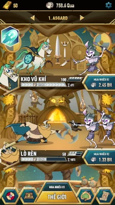 Trận chiến sau cùng đã biến Asgard thành đống đổ nát. Hãy gây dựng lại các tuyến phòng thủ của bạn bằng cách mở khóa các phòng để tạo sắt. Nâng cấp phòng để tăng sản xuất và vượt qua phòng thờ các vị thần. Chiến đấu trong loạt Ragnarök để đặt lại tiến trình, tăng năng suất và chinh phục nhanh hơn bao giờ hết!