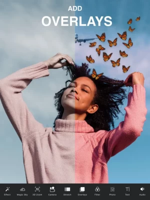 - Add up to 10* different fully customizable effects, filters or photo overlays onto a single picture