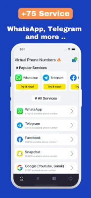 # - Choose a Service: Pick the platform (WhatsApp, Telegram, Tinder, etc.) you want to verify.