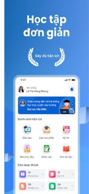 * Tham gia lớp học trực tuyến, nhận thông báo, theo dõi tiến độ học tập và tương tác trực tiếp với giảng viên và bạn học.