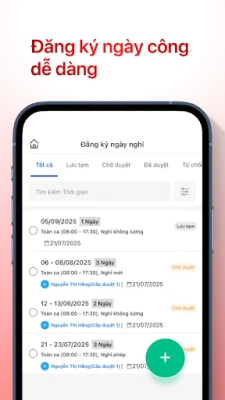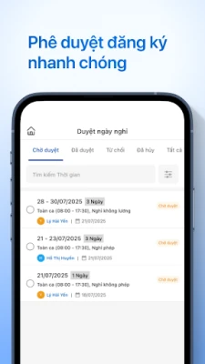 Các tính năng chính bao gồm: - Quản lý thông tin cá nhân và quá trình công tác - Theo dõi/ quản lý ngày công và ca làm việc - Chấm công GPS - Đăng ký/ Phê duyệt đơn từ ngày nghỉ/ vắng mặt/ trễ sớm - Đăng ký/ Phê duyệt đơn từ tăng ca (OT) - Theo dõi các tin tức nội bộ của Công ty