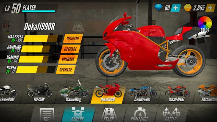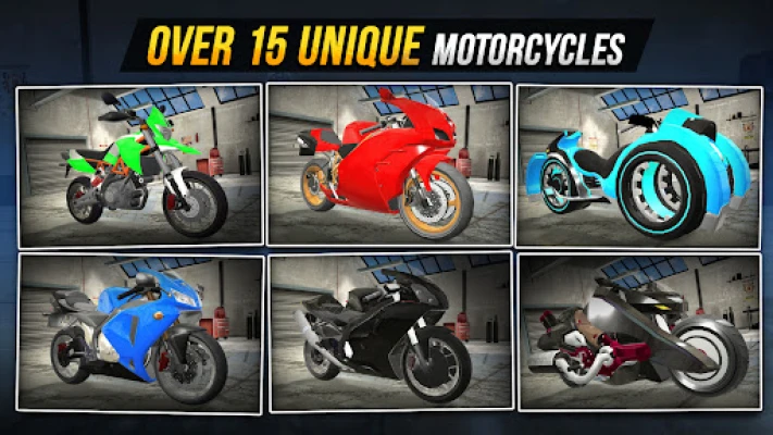 - Thu thập và tùy chỉnh nhiều loại xe mô tô như Replica, Cruiser và Big Scooter.