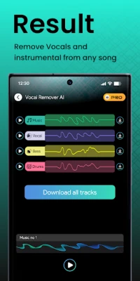 6-Stem Split technology allows you to remover vocals from a song, extract background music, drums, bass, guitar, and piano from any track effortlessly.