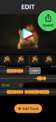 Add the video to your liking and record your own voice over it. It can be a song, an existing video, film, music video, anything you like! Just mute the original video and record your own over. Perfect for your profiles and social networks, ideal for amusement but can also be a powerful tool if you want to express your creativity, show that you are a better actor or singer or add your own note to a video.