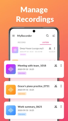 You can record audio of meetings in this voice memo recorder at any time to avoid losing important information. It’s a useful audio recorder & ambient recorder, you can better record work and make audionote by this audio manager that manages voice memo, audio player that plays with multiple speeds. You can also categorize each voice recording by adding tags.