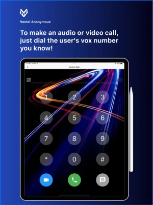 VoxTel Anonymous users are depersonalized. When logging into VoxTel Anonymous anonymously, each new user is assigned a public VoxTel number consisting of 9 random digits. Knowing only the VoxTel number of another user, it is possible to contact them via audio or video communication, exchange messages and other data.