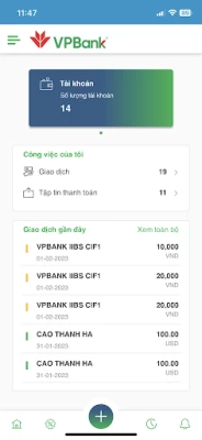 Khách hàng thuận tiện giao dich, quản lý dòng tiền thông minh, kiểm soát dòng tiền 24/7, tiết