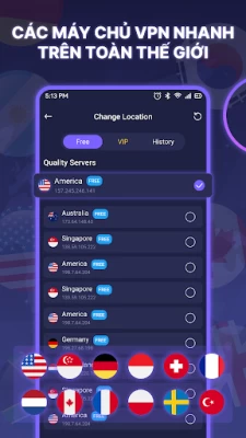VPN - Fast Secure Proxy là một ứng dụng VPN tiên tiến được thiết kế cho các thiết bị Android cung cấp kết nối internet nhanh, an toàn và riêng tư cho người dùng. VPN cung cấp cho người dùng khả năng mã hóa các kết nối của bạn, nhận IP mới và tận hưởng quyền riêng tư trực tuyến tối ưu. VNP cung cấp một đường hầm an toàn giữa thiết bị của bạn và internet, bảo vệ danh tính trực tuyến của bạn. Nó cũng chặn phần mềm độc hại trong quá trình tải xuống, giữ cho thiết bị của bạn không có vi-rút. Mạng máy chủ tốc độ cao của ứng dụng trải rộng trên nhiều quốc gia, cho phép duyệt web riêng tư mà không bị hạn chế và truy cập vào bất kỳ nội dung nào từ mọi nơi trên thế giới