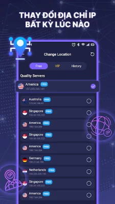 Ứng dụng của chúng tôi cung cấp một dịch vụ đáng tin cậy và đáng tin cậy để đảm bảo kết nối internet của bạn luôn an toàn. Bằng việc thay đổi IP và mã hóa thông tin trên đường truyền internet, mọi hoạt động duyệt web của bạn hoàn toàn ẩn danh không lo rò rỉ thông tin.