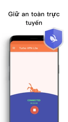 Tận hưởng kết nối nhanh hơn và ổn định hơn với VPN Turbo Lite, ngay cả trên điện thoại thông minh có không gian thấp. Kích thước APK chỉ 6MB, bạn cũng có thể tải xuống nhanh và tiết kiệm dung lượng trên điện thoại của bạn.